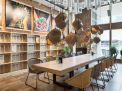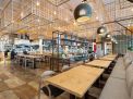 Die modular aufgebauten Gerichte aus Produkten des Hauses, darunter auch vegetarische und vegane Speisen, werden vor den Augen der Gäste in einer zentralen, offenen Küche zubereitet. Insgesamt rund 1000 Quadratmeter Fläche sind in differenzierte Zonen untergliedert: Zur Selbstbedienungstheke und der offenen Halle des Restaurants kommt ein abtrennbarer Nebenraum mit Meerblick sowie eine Coworking-Area, die auch für Events gemietet werden kann.