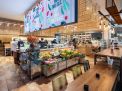 Das neue Restaurant am Hafen dient nicht zuletzt als Aushängeschild der Marke und als Trendlabor. Sein Konzept ist hochaktuell und richtet sich sowohl an die Angestellten der benachbarten Bürokomplexe als auch an Touristen. Hier speisen heute täglich rund 400 Gäste, zusätzlich gehen etwa 300 Take-away-Gerichte über die Theke.